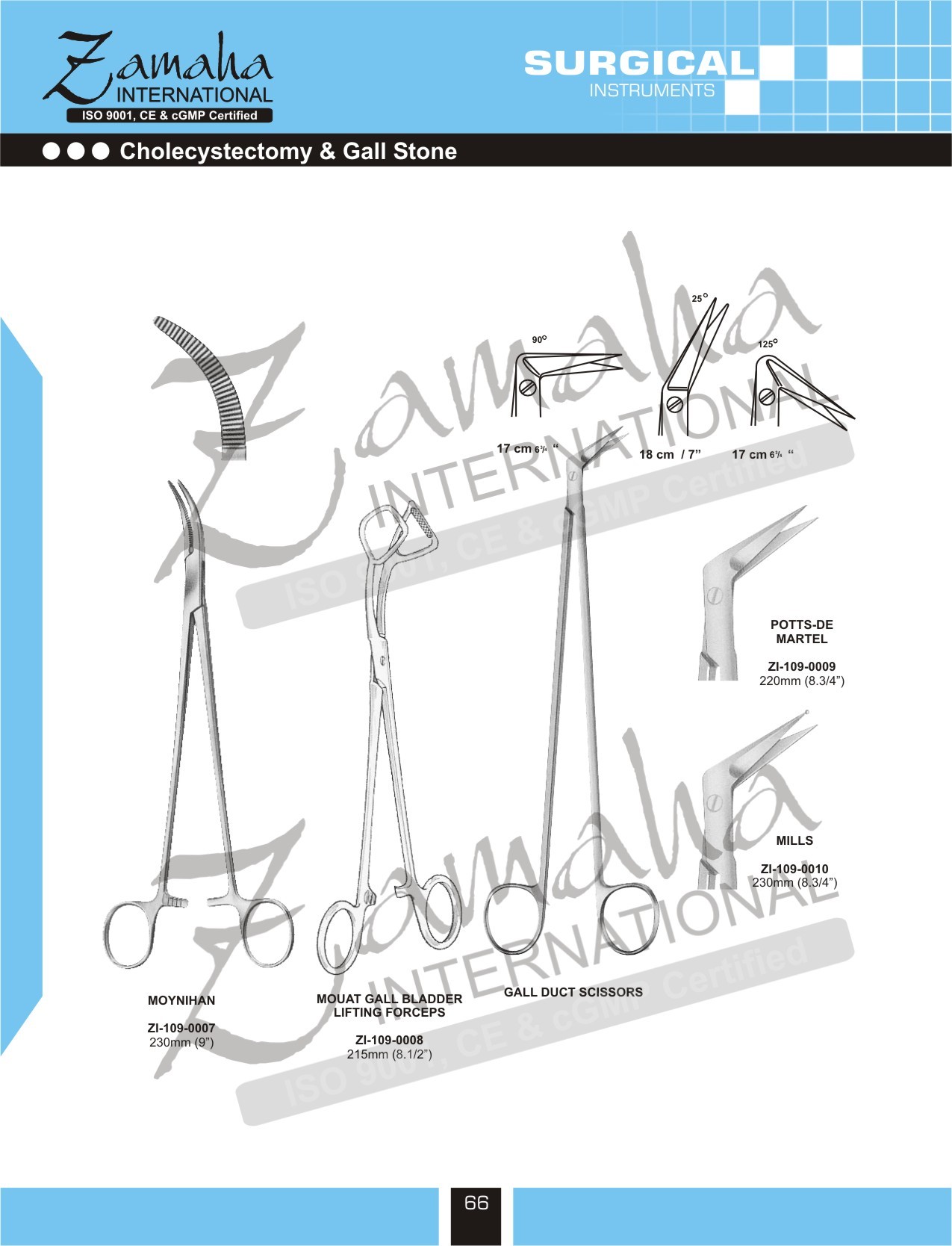 Gall Duct Scissors, Mouat Gall Bladder Lifting Forceps, Moynihan Cholecystectomy Forceps, Potts-De martel Scissors, Mills Scissors