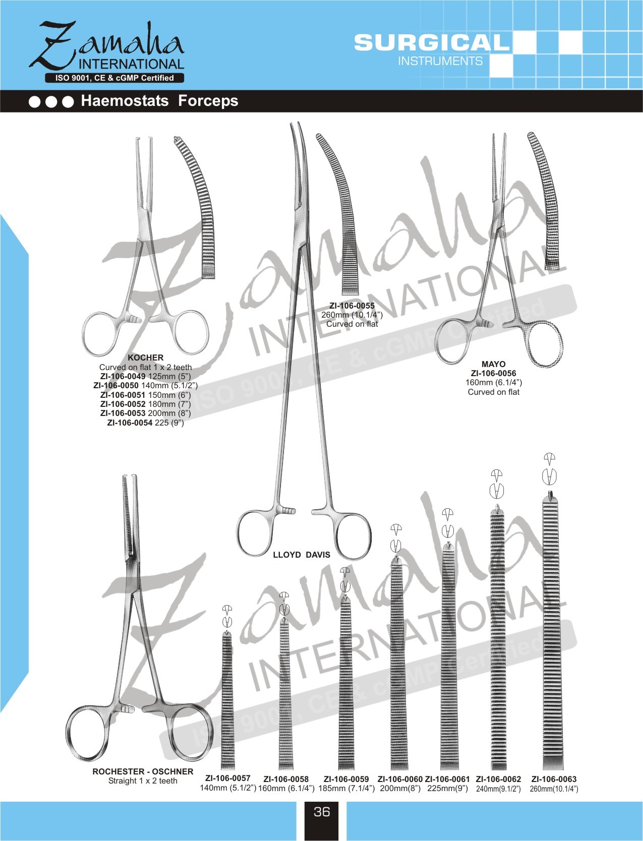 Kocher Forceps, Mayo Forceps, Rochester-oschner forceps