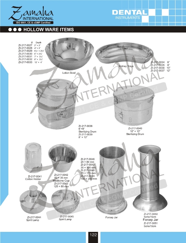 Lotion Bowl, Kidney Tray, Kidney Dish, Hospital Kidney Tray, Sterilizing Drums, Cotton Holder, Cotton Holder Dental, Medicine Cup, Spirit Lamp, Forceps Jar, Alcohol Spirit Lamp